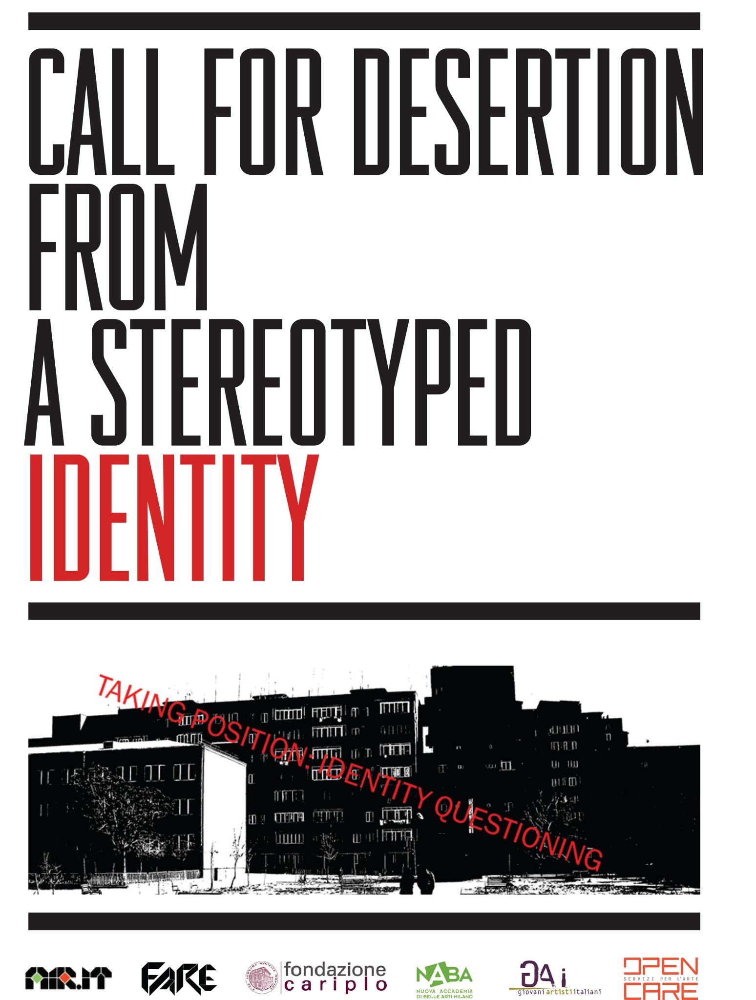 Call for a desertion from a stereotyped identity è uno dei 3 progetti selezionati da RESIDENZE ITALIA e da FARE per il programma Taking Position: Identity Questioning pensato per favorire la mobilità nel nostro paese degli artisti partecipanti. Taking Position: Identity Questioning è un percorso di studio e analisi culturale e artistica sullo scambio e sul confronto. Utilizzando la nozione del paradosso come punto di partenza e la narrazione come metodologia, il progetto intende indagare la costruzione dell’identità soggettiva in tempi di straordinario disordine sociale e incertezza politica.