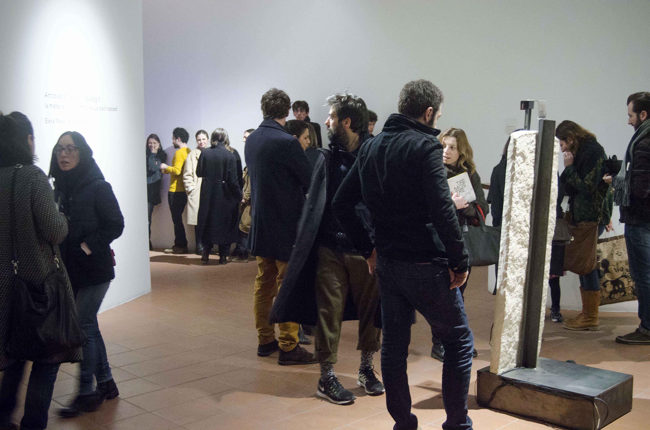 Tre mostre is a collaborative project between not only the artists Elena Mazzi & Elisa Strinna but including a participation of Trial Version, a curatorial team composed by Marco Di Giuseppe, Michela Lupieri, Valeria Mancinelli, Chiara Nuzzi, Stefania Rispoli, and Elena Mazzi herself, that seeks similar objectives from the apprehension of the contemporary art scene in Italy. The collaborators seek to pose questions to the respective audience and strive forth not singularly for aesthetical purposes, however provoking questions that surmount to the intention of change – highlighting especially (their definition) of disaster, in both natural and cultural senses. In previous collaborations (Articolazioni oltre il linguaggio, Massimodeluca Gallery, Mestre, IT) the artists have similarly explored the notion of the relation between humanity and nature and the language they share. This collaboration extends to an assemblage of human connectivity and thus forth the connection they outline in nature.
