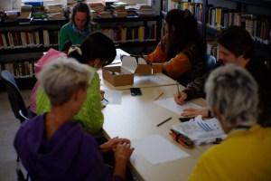 Finalmente è arrivato il giorno di fare il laboratorio nella biblioteca, estendendo l’invito e l’atto di ospitalità anche alle bambine e ai bambini della scuola elementare. Il sindaco ci consegna le chiavi della biblioteca e apriamo le porte. Sembra una sorta di autogestione. Martina pulisce tutto con la cura preziosa che distingue i suoi gesti, Cosimo scatta fotografie con occhio curioso. Qualcosa si insinua tra la polvere e le ragnatele di un posto che non vede spesso la luce, eppure brilla. Arrivano i primi genitori che accompagnano figlie e figli. Fanno parte di un’unica classe che raggruppa la terza, la quarta e la quinta elementare. Si inizia con una domanda: chi di voi ospiterebbe una nuvola nella sua casa?