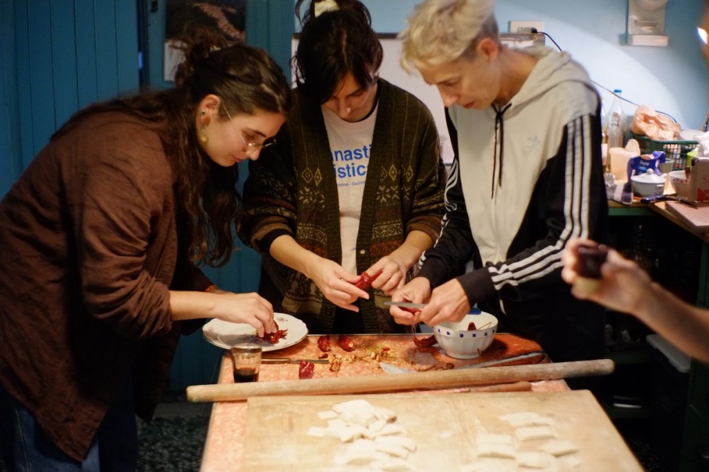 Intanto con Cosimo, Gisela e Martina prepariamo il pranzo. Ci raccontiamo a vicenda mentre mangiamo la pasta al sugo, proviamo a districare pensieri sui progetti e sui giorni a venire.