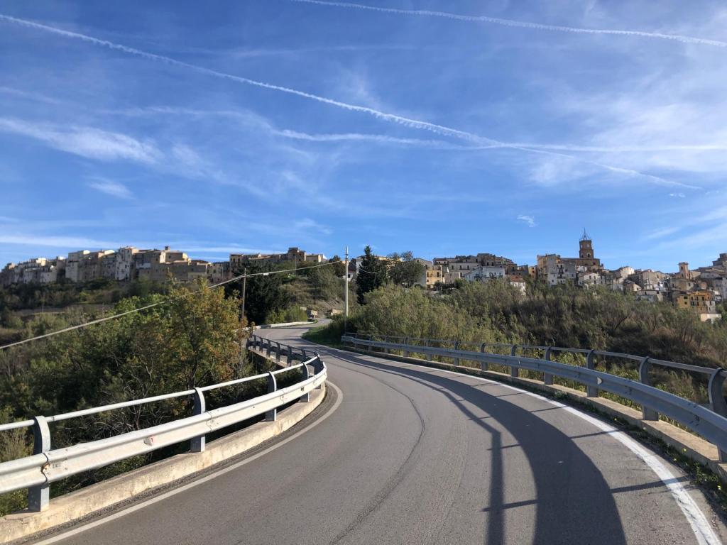 Oggi nasce la nostra comunità provvisoria. Alle 9:00 di mattina apro la porta di casa e saluto una signora, ha il foulard in testa come la maggior parte delle signore ultrasettantenni di Guilmi, e questo dettaglio mi fa sorridere. Le chiedo se il camioncino che porta il pane in paese – visto che qui non c’è il panificio – è già passato. Mi risponde di sì, ma nel tentativo di aiutarmi prende subito il telefono e chiama la signora Teresa, madre di Pino, che lavora al bar. Allora li raggiungo. Le finestre del locale chiedono al paesaggio di entrare, lo seguo e mi accordo per prendere pane e focacce il giorno successivo.
