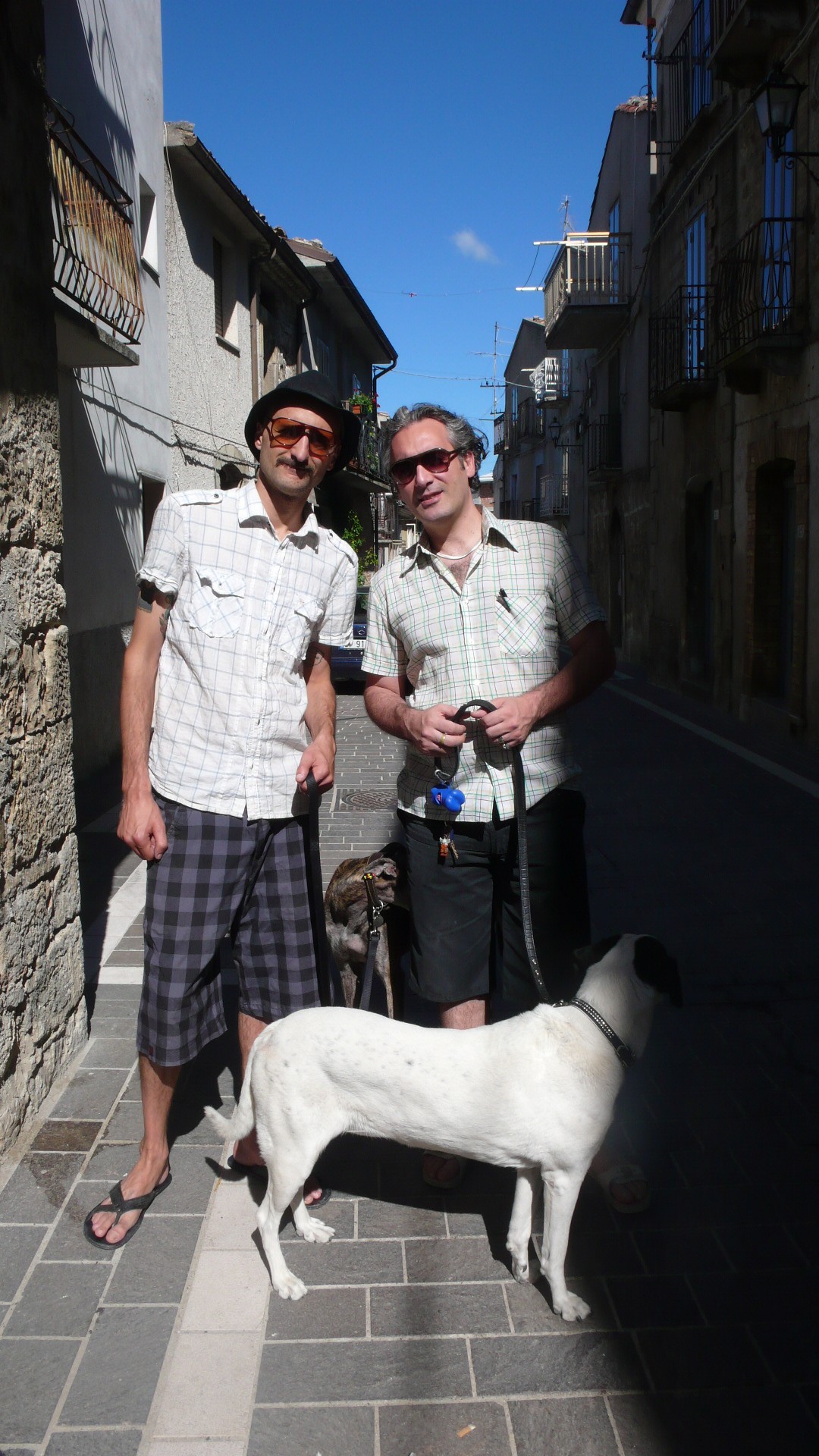 Di Amigo Mio (a sinistra nella foto) che dire? Ariete da piccino, è sempre stato un “apripista”, come si evince dal ruolo che impersona nelle serate guilmesi, nelle quali Santo Johnny prepara il terreno di note discreto e mnemomorfico, e il vocalist Amigo Mio sconquassa il materasso mettendo a propio agio, ma anche molto a disagio. Ricordo, per esempio, l’infelice exploit: “Guilmi 2011, altro che terremoto”, da cui scaturì il felicissimo adagio “E’ colpa mia”. Oppure il più recente “il tramonto sul mare è gay, l’alba sul mare è macho”, che mandò in delirio le folle della costa adriatica nell’estate 2013. Esperto in incitamenti da Tagadà, a richiesta svolge anche l’attività di dog sitter. Sulla sua reale identità ci sono numerosi dubbi: non si sa chi sia realmente o cosa faccia nella vita di ogni giorno; si registrano svariate apparizioni di suoi alias in un gioco di identità impossibile da decifrare. Di seguito alleghiamo una serie di documenti che presentano peronaggi sotto le spoglie dei quali forse si nasconde un Rettiliano: