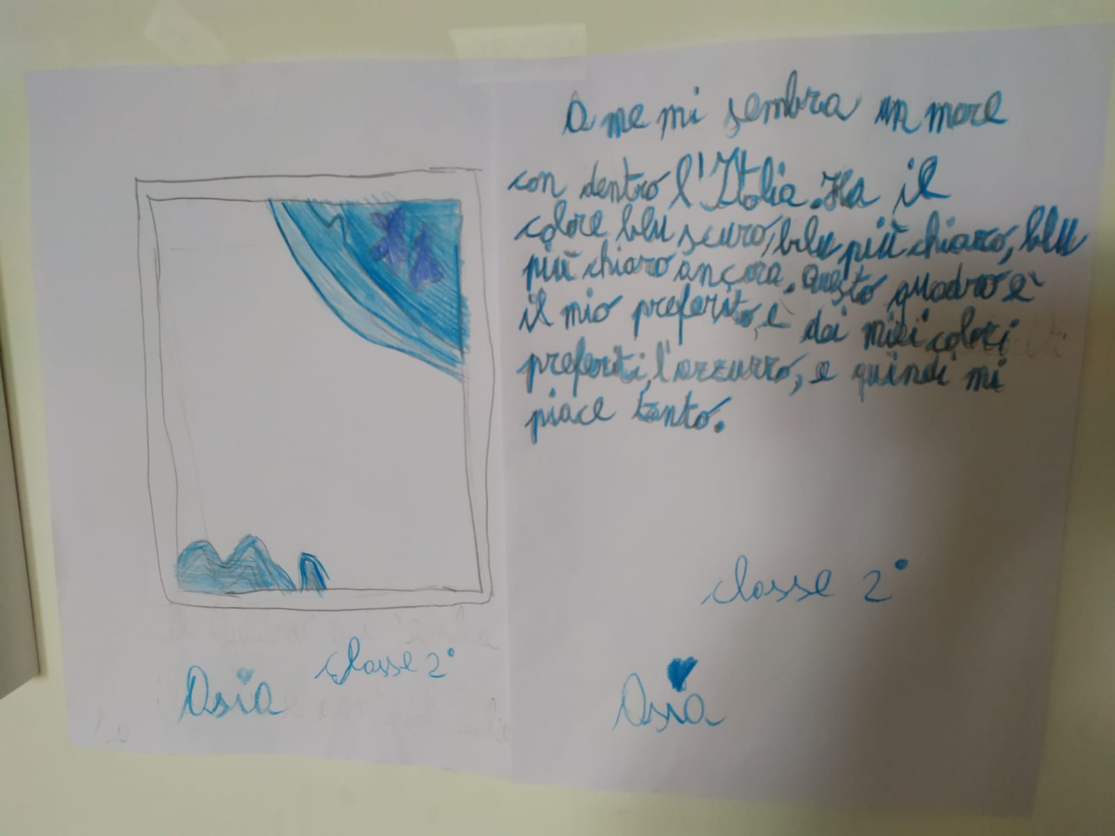 I bambini hanno vissuto tutta la mattina di lezione nella casa museo GAP. Hanno sistemato nella stanza d’ingresso. In seguito, hanno visitato la casa individuando le opere nelle varie stanze. Ognuno ha liberamente scelto le opere che voleva disegnare. Con il loro materiale si sono divisi nelle stanze a seconda del quadro scelto. Hanno disegnato, colorato e descritto l’opera scelta sul quaderno e sui fogli che sono stati sistemati vicino ai quadri.