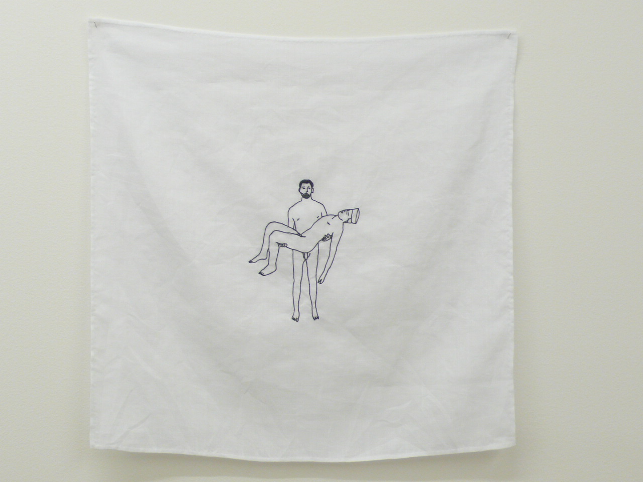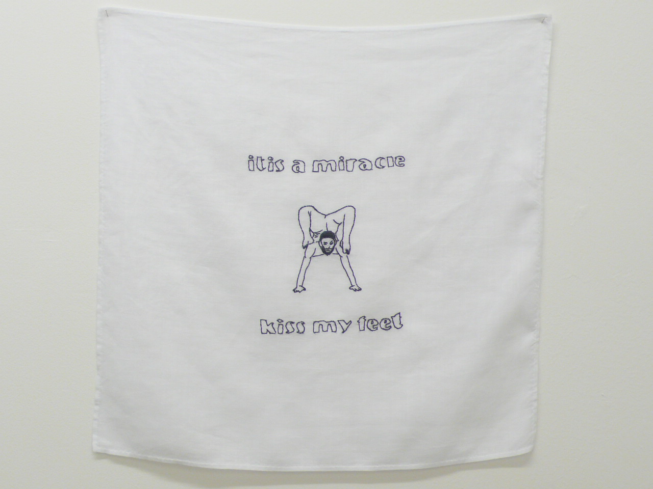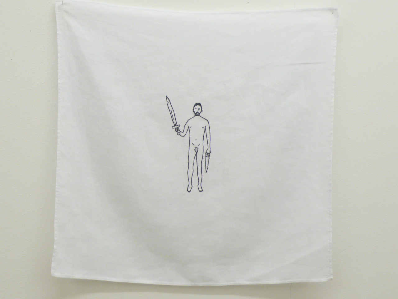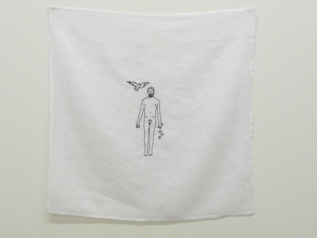 Marco Mazzoni, E’ un miracolo, serie di otto teli di lino ricamati a mano, con miracoli della vita di San Nicola. Tutte le opere sono realizzate su teli di lino finissimo 40×40 e ricamati con filo di seta color antracite.